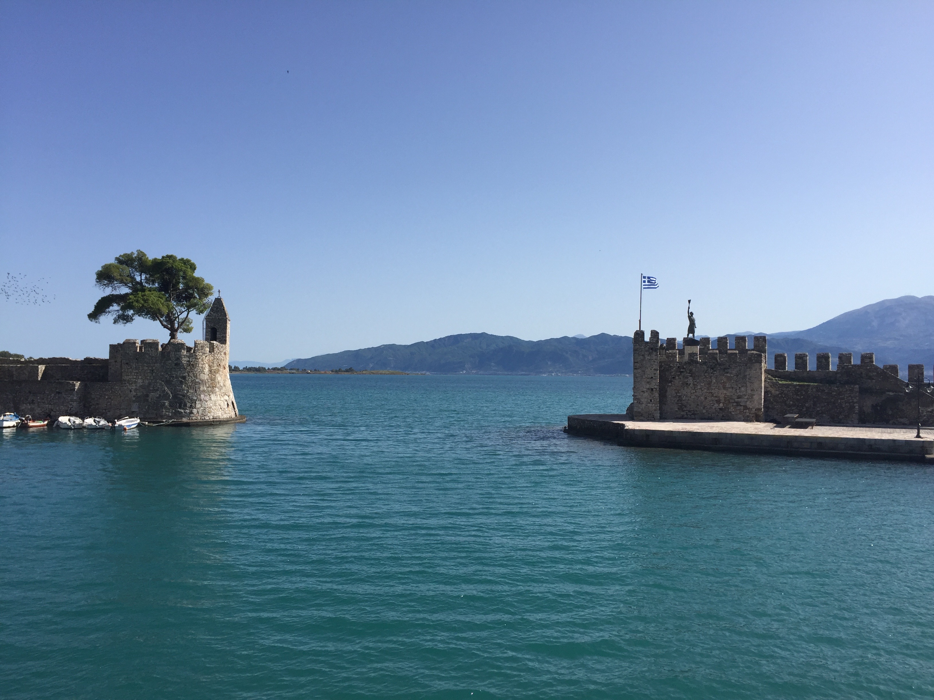 nous allâmes à Naupacte où nous savourâmes la douceur de vivre grecque. Le temps était bon, le ciel bleu, et la chaleur était au rendez-vous. Nous nous delassâmes dans un premier temps au bord des eaux adriatiques, délassement bien sûr suivi de la traditionnelle photo de groupe, avant de nous disperser et de vaquer à nos occupations pendant une heure peu ou prous. Tandis que certains se mettaient en recherche acharnée de quelque ruine encore inconnue à eux, d'autres se prélassèrent paresseusement sur les terrasses de la cité dont le charme n'était pas des moindres. Jamais on ne savourât une eau gazeuse ou un quelconque soda avec autant de plaisir. Il faut dire que le voyage, commençait à peser dans les esprits légers de nous autres lycéens frivoles et enjoués par une ambiance de vacances anticipées. Après le délassement vint inévitablement le moment du retour au bus pour une énième heure de trajet avant le saint graal qu'était l hôtel de Delphes et la promesse d'un lit dans une chambre fatalement plus spacieuse que la cabine du bateau et nécessairement plus confortable que les sièges du bus. Les photos ne tarirent évidemment pas et les rires fusaient de nos bouches empatées par nos courtes nuits précédentes. En somme une étape bien sympathique au bon rapport qualité-temps qui n'a pas manqué de céder place à la bonne humeur face à la fatigue.
