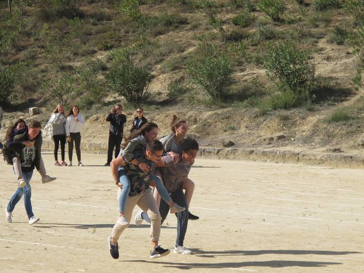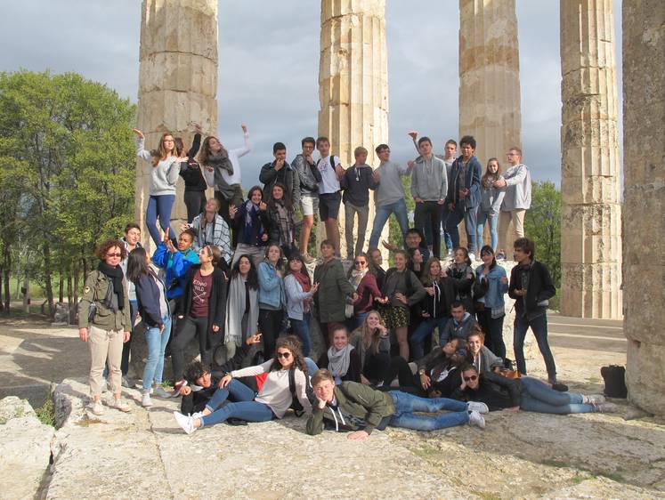 Le coeur lourd nous nous rendons pour la dernière fois au self de l'hotel pour apprécier un dernier petit déjeuner grec. Puis rapidement tout le monde est prêt à partir car nous avons l'habitude de faire vite nos valises. Thierry en bon chauffeur de bus, la cigarrette à la bouche, nous aide à charger nos valises, direction le site de Némée. Dans ces dernières ruines du Péloponèse que nous visitons, nous redécouvrons le mythe du lion de Némée, qui, fut tué ici par Héraclès (Hercule). C'est le premier des douzes travaux d'Héraclès. On a appris par ailleurs qu'il y avait des lions en Grèce antique (au 9-8èm siécles av. J-C). Puis visite d'anciens bains et d’un stade où une course est improvisée sur la piste pour nous amuser et nous mettre à la place des anciens athlètes (j'ai fini dernier). Ce site était notre dernier, dernières photos de nous dans le temple de Zeus, autourd'une de ces gigantesques colonnes qui faisaient honneur à la Grèce il a plus de 2000 ans. Au revoir Némée, au revoir la Grèce, boujour le bateau et à trés vite la France.