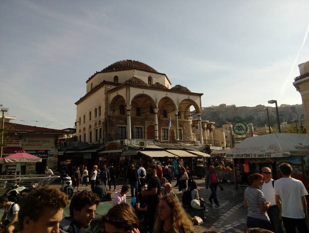 Nous avons du traverser de nombreuses rues pour arriver au point central, en esquivant des marchands ambulants plus ou moins collants, la place Monastiraki.