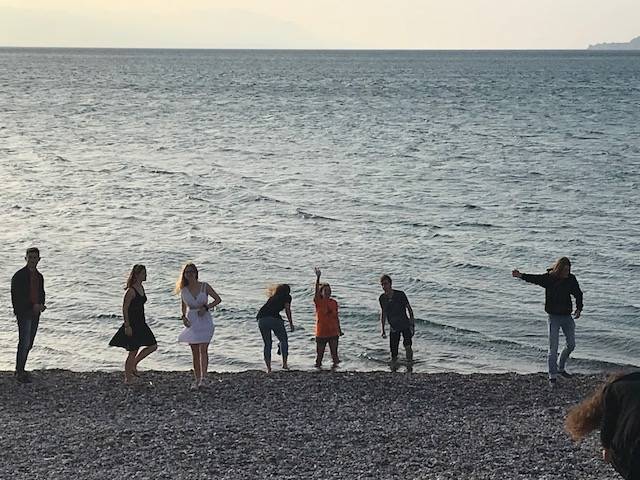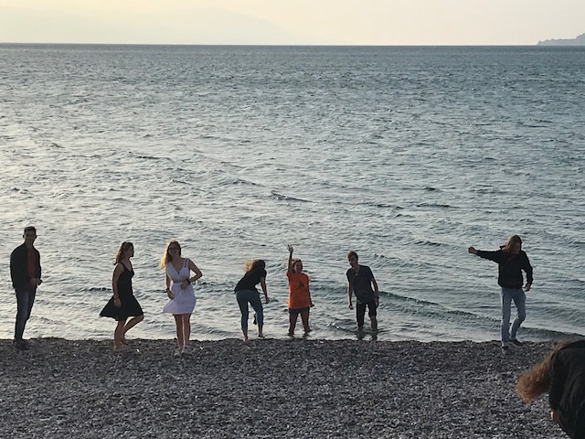 Une fois arrivés, nous avons posé bagages à l’hôtel Mantas à Loutraki. A deux pas de la mer, nous avons pu admirer un superbe couché de soleil orangé entre deux montagnes a l'horizon juste derrière une très longue plage de galets et la mer au second plan, un moment autant magnifique à vivre qu’à voir. Pour les chambres, nous avons eu le droit à trois ou quatre véritables lits, une baignoire en prime pour ceux qui n'en n’avaient pas encore eu le luxe ainsi qu’une terrasse.