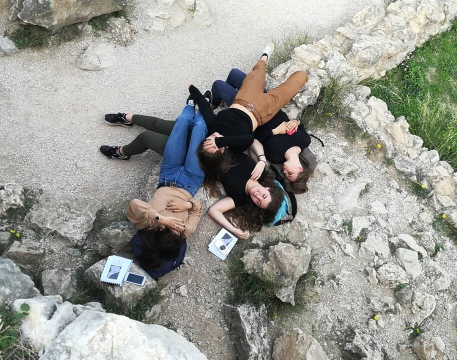 Il nous a fallu du courage pour arriver tout en haut mais la vue en vallait la peine. Nous avons trouvé une grotte à l'intérieur de laquelle nous avons pu reprendre notre souffle en descendant et en profitant de la fraîcheur de celle ci. Quelle déception de trouver un simple point d'eau stagnante après tant d'efforts, mais heureusement nous avons appris que c'était une citerne où les Mycéniens se ressourçaient en eau potable. Le repos fut de courte durée lorsque nous nous sommes rendu compte qu'il fallait tout remonter.Nous étions vraiment É-PUI-SÉES.